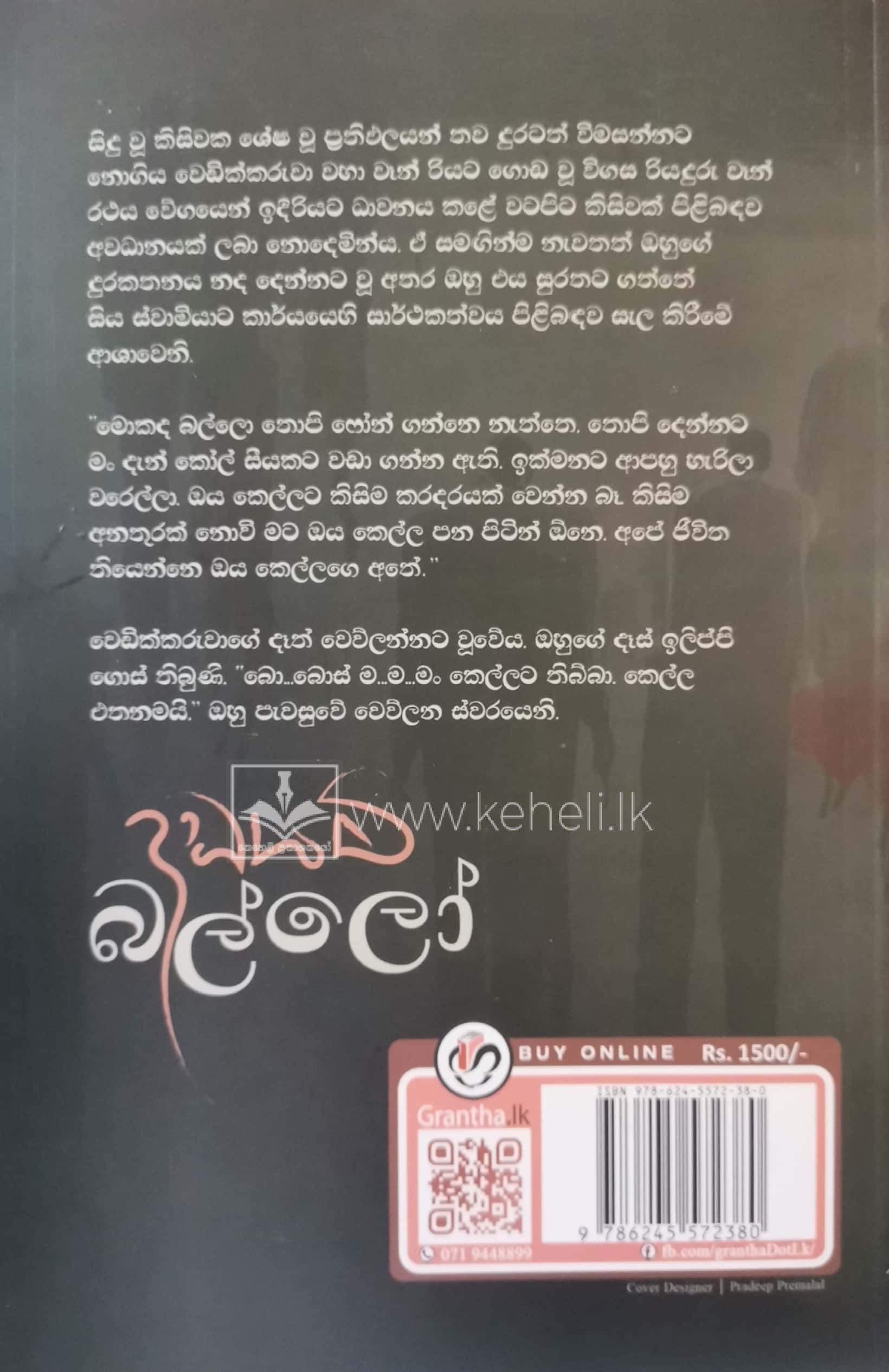 මොකද බල්ලො තොපි ෆෝන් ගන්නෙ නැත්තෙ, තොපි දෙන්නට මං දැන් කෝල් සීයකට වඩා ගන්න ඇති ඉක්මනට ආපහු හැරිලා වරෙල්ලා. ඔය කෙල්ලට කිසිම කරදරයක් වෙන්න බෑ කිසිම අනතුරක් නොවි මට ඔය කෙල්ල පන පිටින් ඕනෙ, අපේ ජීවිත තියෙන්නෙ ඔය කෙල්ලගෙ අතේ.”