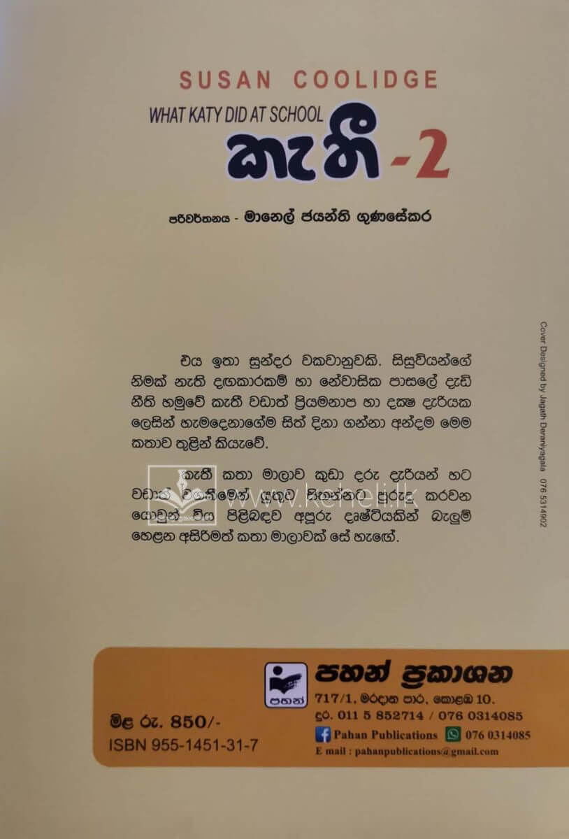 කැතී කතා මාලාව කුඩා දරු දැරියන් හට වඩාත් වගකීමෙන් යුතුව සිතන්නට පුරුදු කරවන යොවුන් විය පිළිබඳව අපූරු දෘෂ්ටියකින් බැලුම් හෙළන අසිරිමත් කතා මාලාවක් සේ හැඟේ.