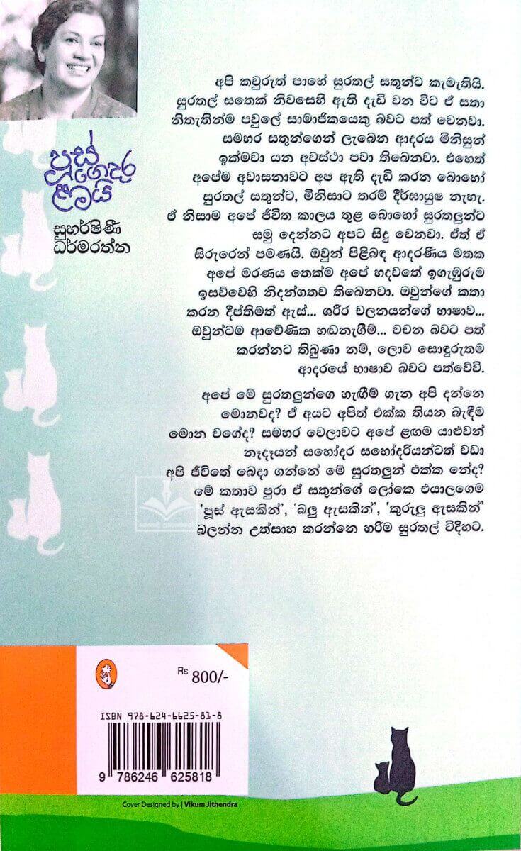 නෑදෑයන් සහෝදර සහෝදරියන්ටත් වඩා අපි ජීවිතේ බෙදා ගන්නේ මේ සුරතලුන් එක්ක නේද? මේ කතාව පුරා ඒ සතුන්ගේ ලෝකෙ එයාලගෙම ‘පුස් ඇසකින්’, ‘බලු ඇසකින්’, ‘කුරුලු ඇසකින් ‘ බලන්න උත්සාහ කරන්නෙ හරිම සුරතල් විදිහට.