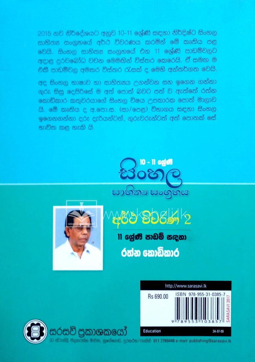 2015 නව නිර්දේශයට අනුව 10-11 ශ්රේණි සඳහා නිර්දිෂ්ට සිංහල සාහිත්ය සංග්රහයේ අර්ථ විවරණය කරමින් මේ කෘතිය පළ වෙයි. සිංහල සාහිත්ය සංග්රහයේ එන 11 ශ්රේණි පාඩම්වලට අදාළ දුරවබෝධ වචන මෙමඟින් විස්තර කෙරෙයි. ඒ සමඟ ම එකී පාඩම්වල අමතර විස්තර රැසක් ද මෙහි අන්තර්ගත වෙයි.
